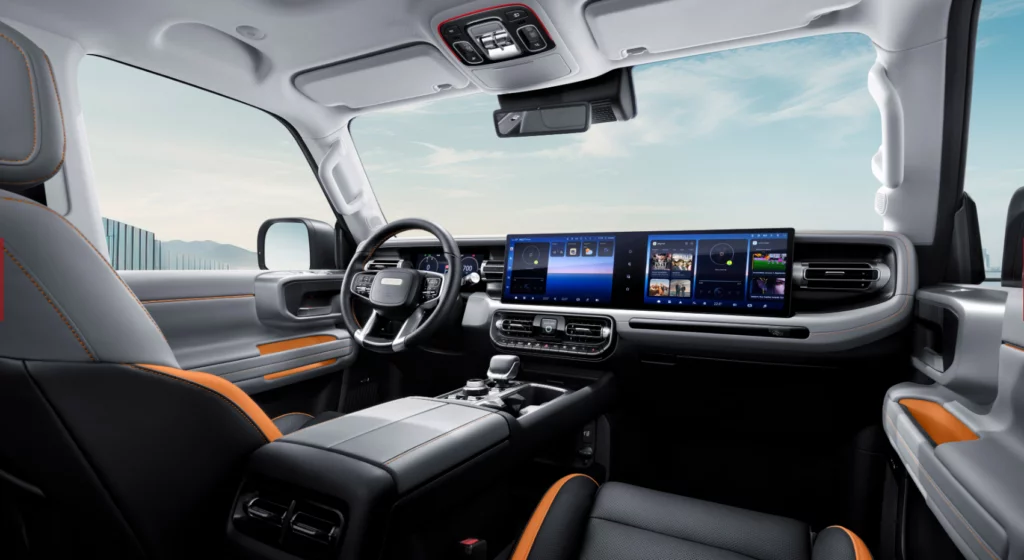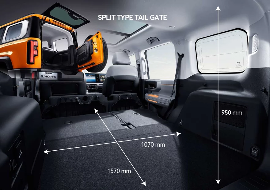 Le BJ40 ne manque pas de confort. Elle est équipée de série d’un intérieur en cuir végétalien élégant et, pour les jours froids, elle offre un chauffage au volant et un chauffage aux sièges avant. Par temps chaud, vous pouvez compter sur la ventilation des sièges. Les sièges avant sont réglables électriquement avec une fonction mémoire sur le siège conducteur. Le toit ouvert panoramique offre une sensation d’espace supplémentaire.